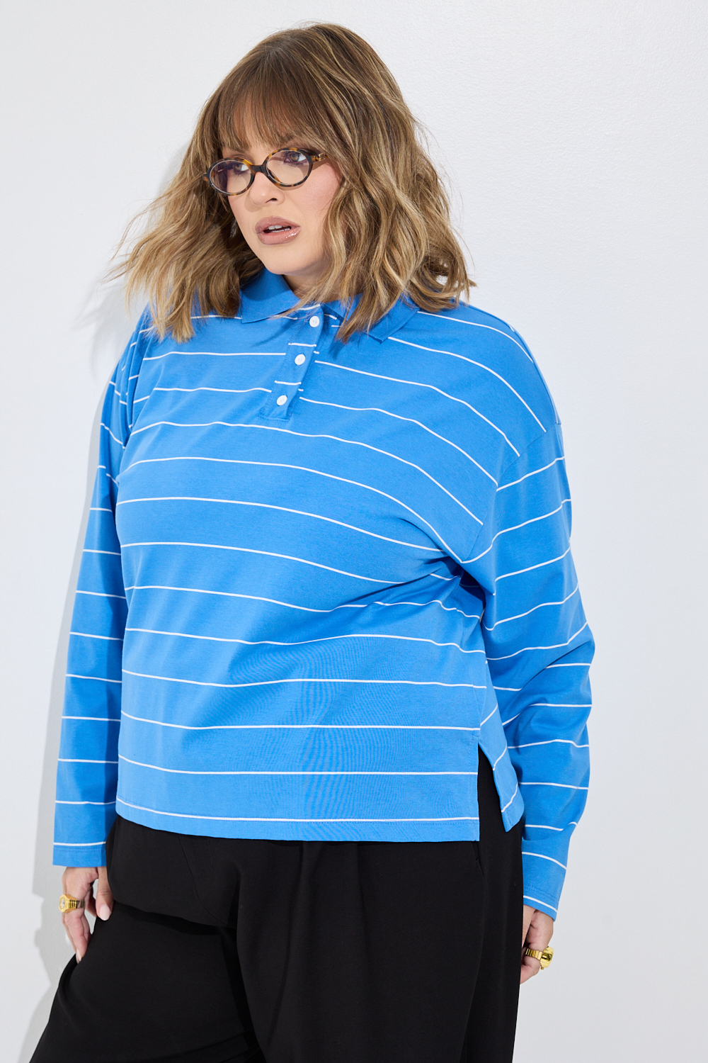 Com listras em azul e modelagem que se adapta bem ao corpo, esta peça é ideal para composições casuais. A gola polo e as mangas longas adicionam sofisticação na medida certa, tornando-a perfeita para diferentes ocasiões.