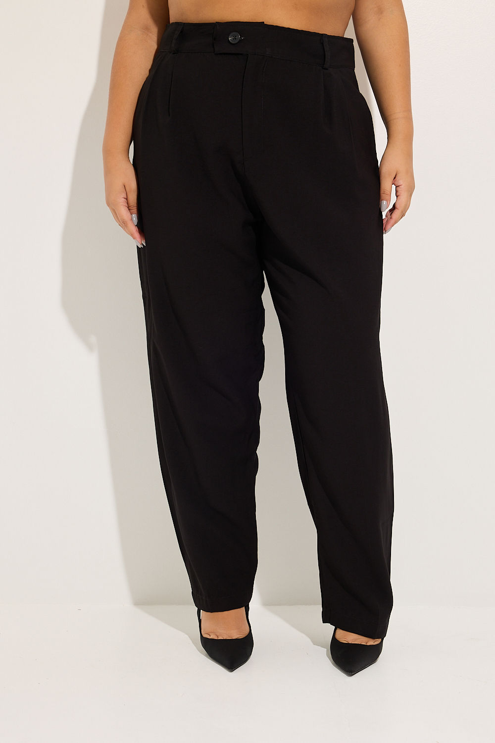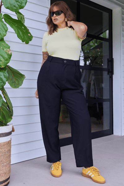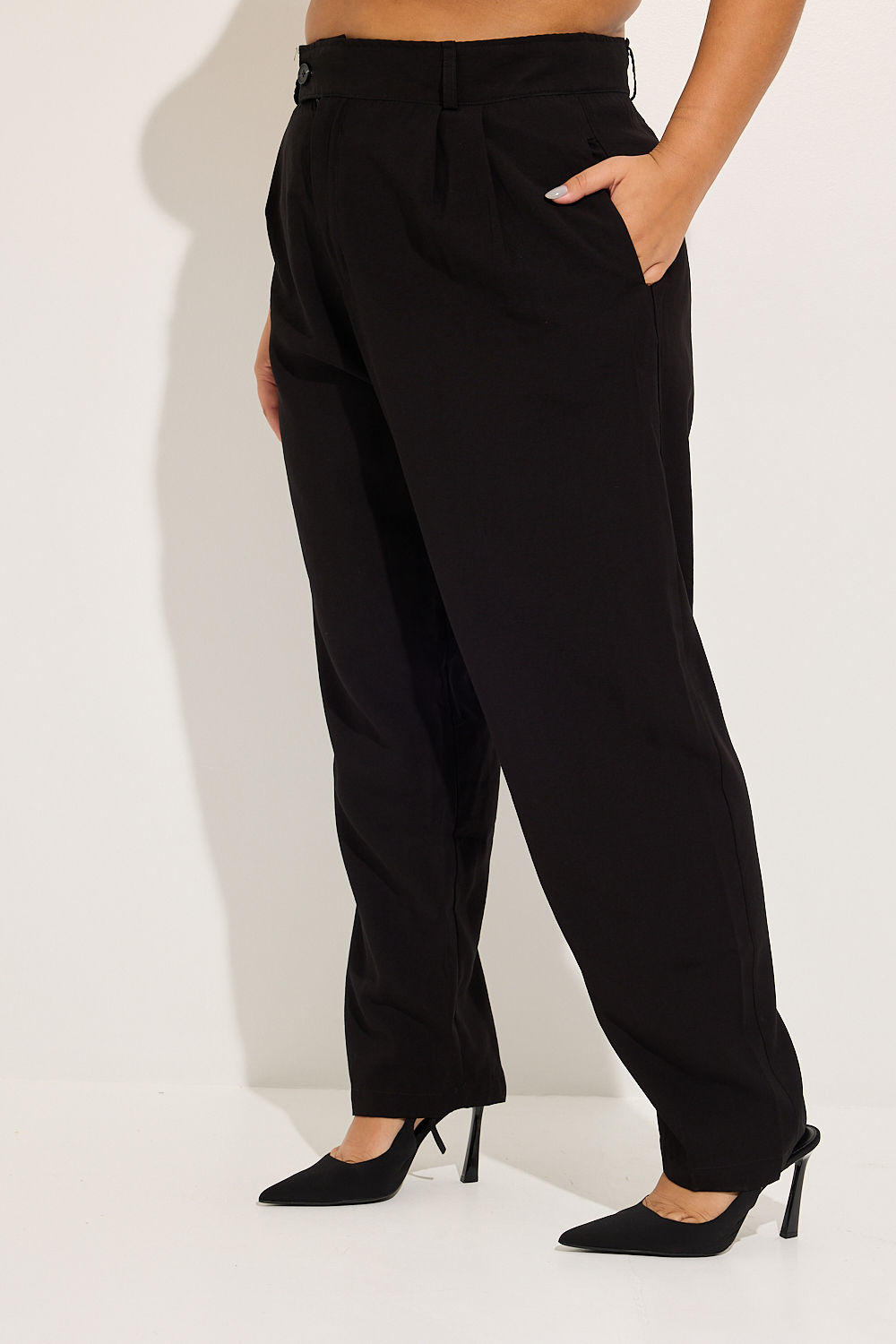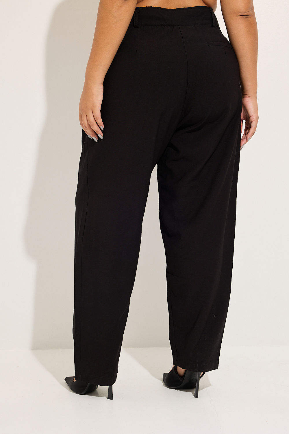 Seu design refinado conta com um cós entretelado estruturado e passantes para cinto, permitindo diversas combinações. As pregas frontais estratégicas acrescentam um toque de alfaiataria clássica, enquanto os bolsos traseiros não funcionais mantêm a fluidez do tecido sem comprometer a sofisticação da peça.