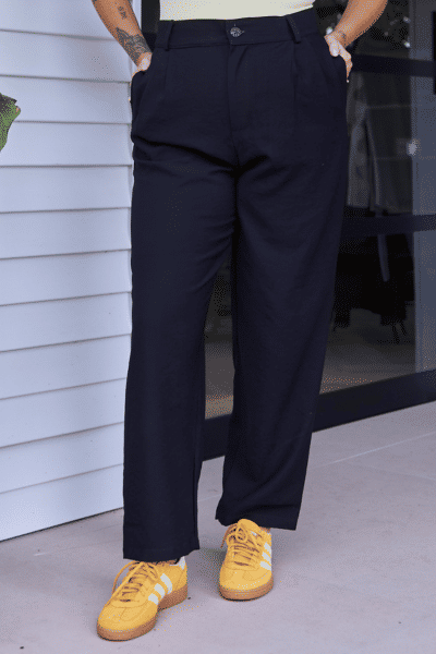 Ideal para quem busca um look alinhado e versátil, a Calça Salete Preta pode ser combinada com camisas para um visual elegante ou com tops ajustados e sandálias para um toque moderno e despojado. Um verdadeiro must-have para quem valoriza estilo e conforto.