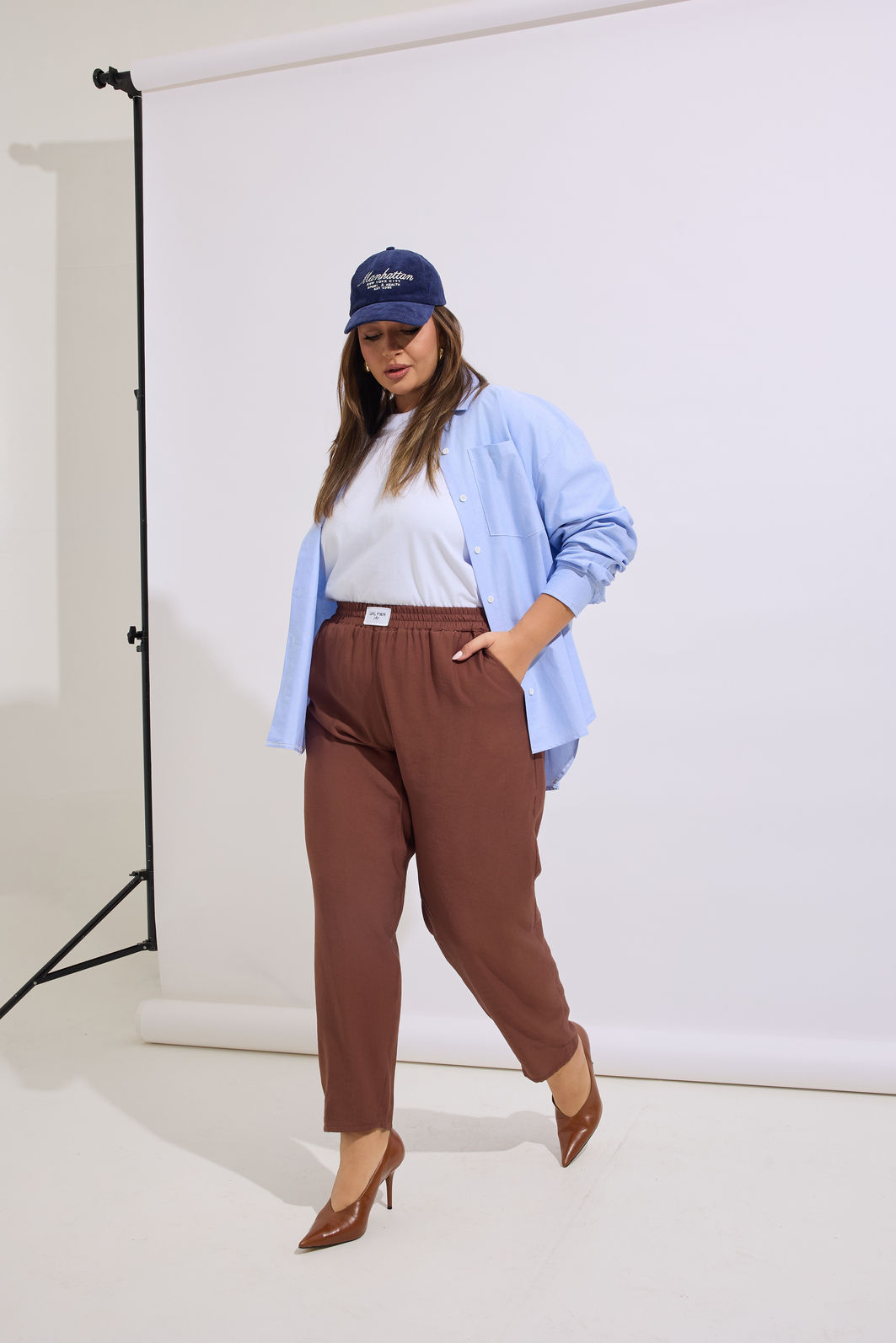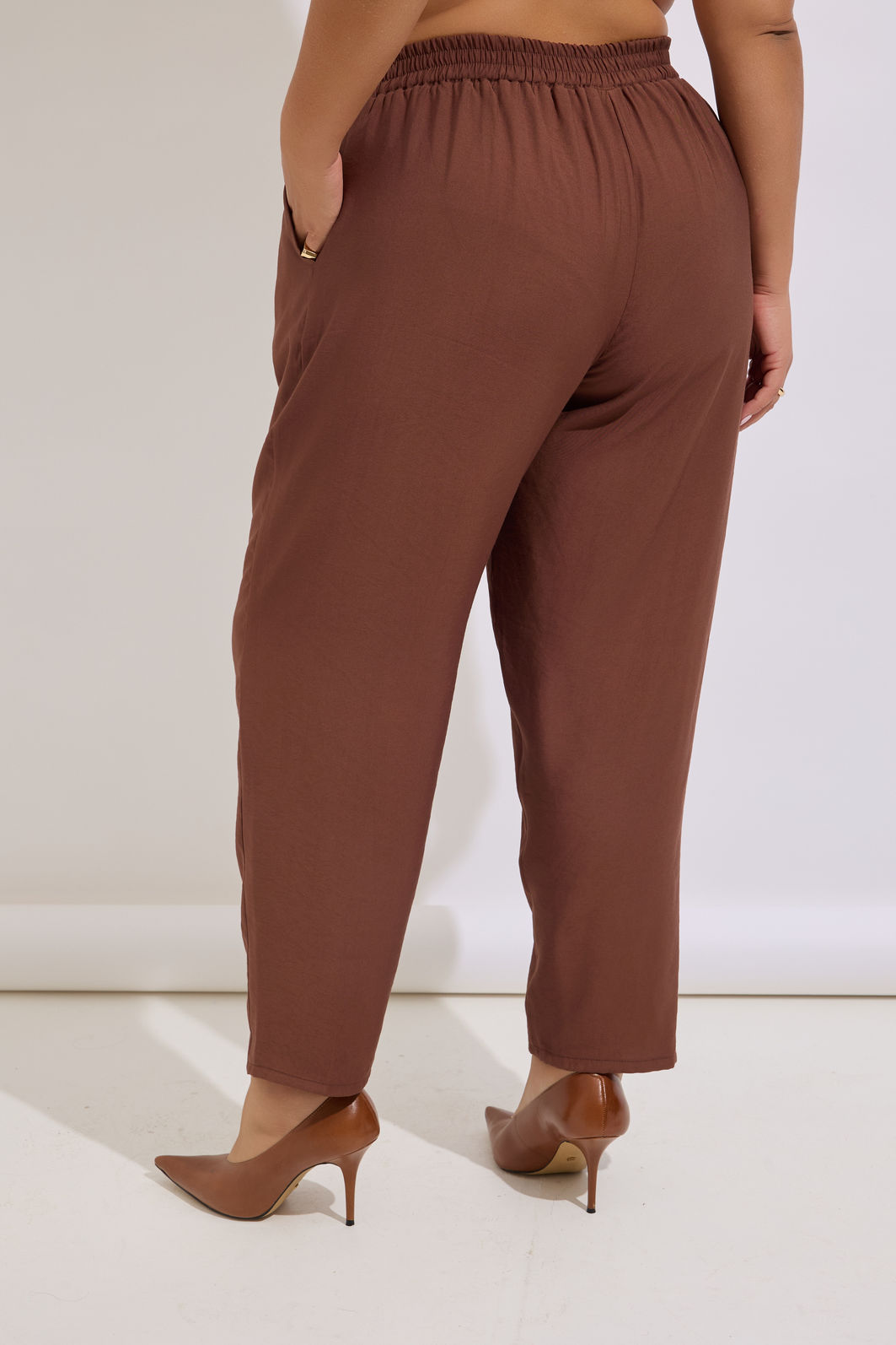 A Calça Cenoura Marrom é a escolha certa para quem busca elegância com conforto no dia a dia. Confeccionada em viscose leve e fluida, ela possui modelagem mais soltinha no quadril e ajustada na barra, valorizando a silhueta com um caimento impecável. A tonalidade marrom adiciona sofisticação e versatilidade à peça, que transita com facilidade entre o casual e o refinado. Combine com uma blusa básica para um visual moderno e despojado ou com camisas para um look mais elegante e atual. Essencial, prática e estilosa.