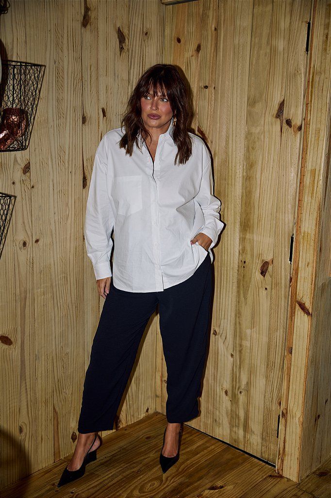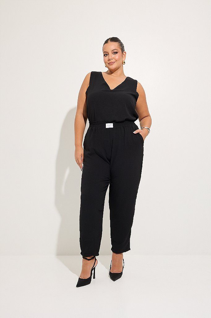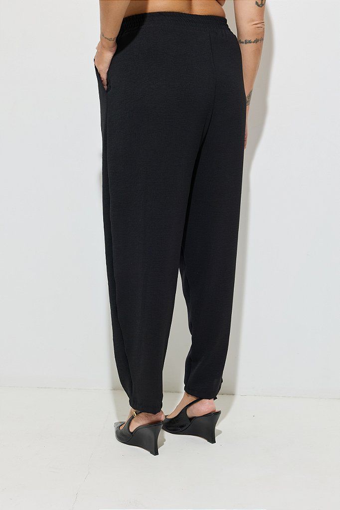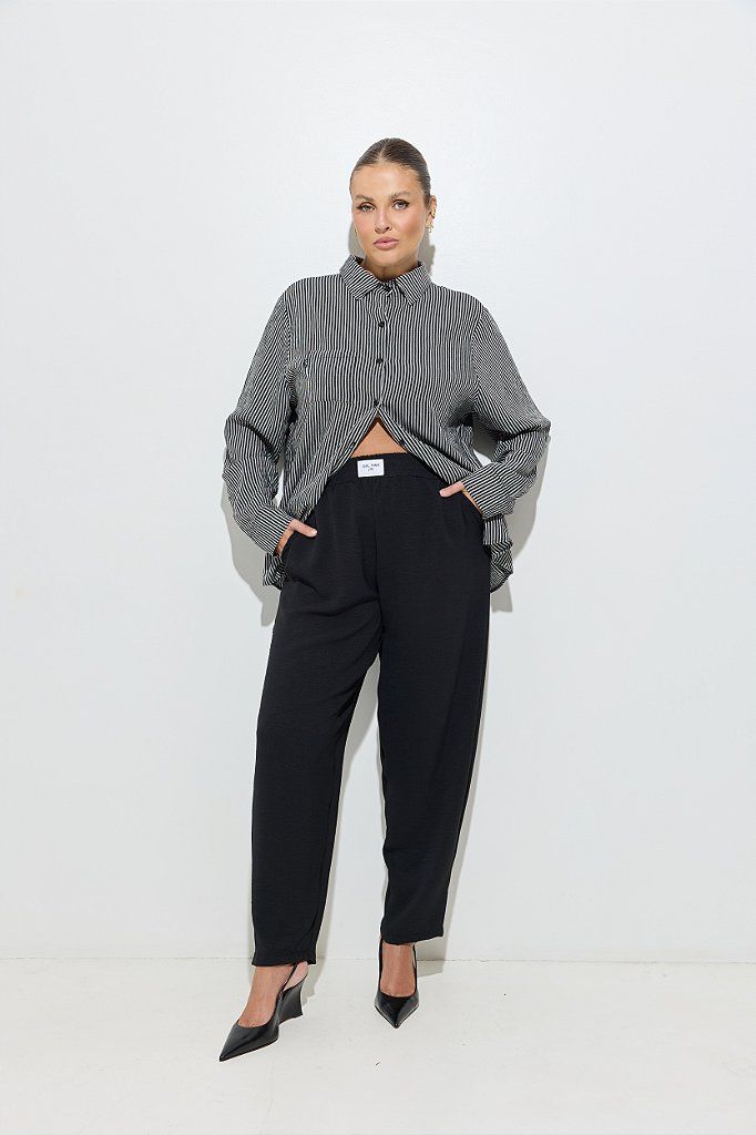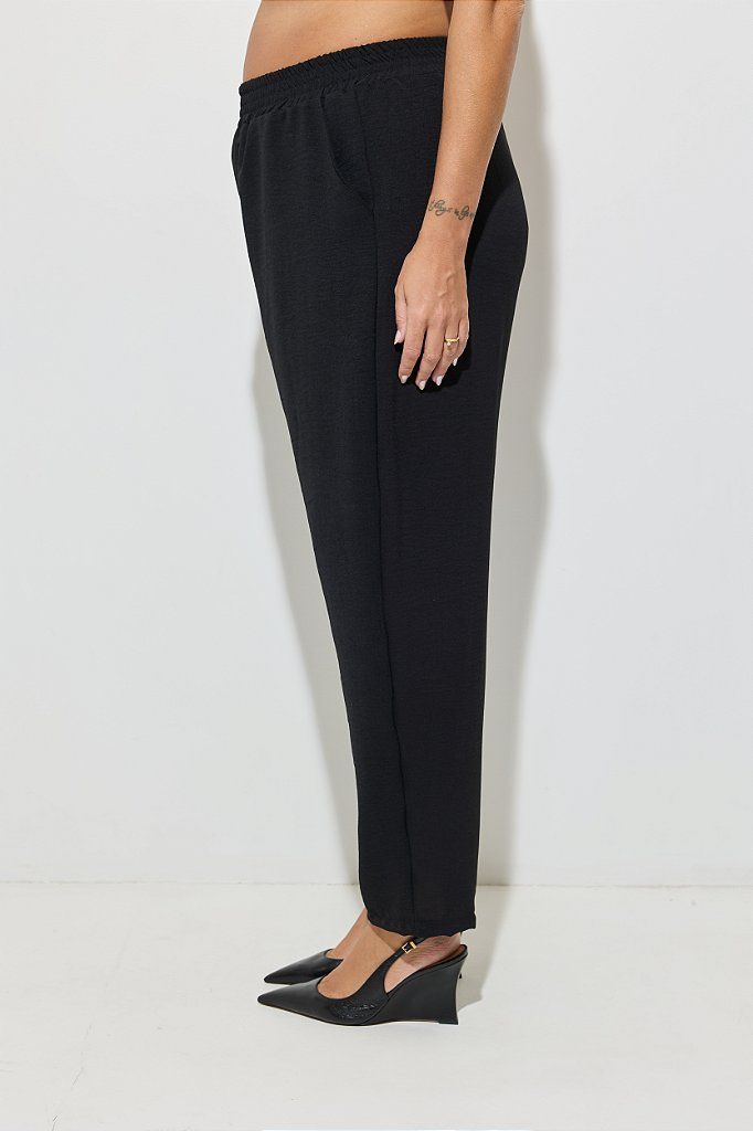 Em crepe leve, com caimento impecável, ela veste solta no corpo sem marcar e acompanha seus movimentos com conforto o dia todo. O cós com elástico se adapta à cintura com facilidade, valorizando a silhueta de forma natural. A modelagem levemente mais soltinha em cima e ajustada na barra alonga o corpo e deixa o visual elegante na hora do trabalho ao final de semana, com salto ou tênis.