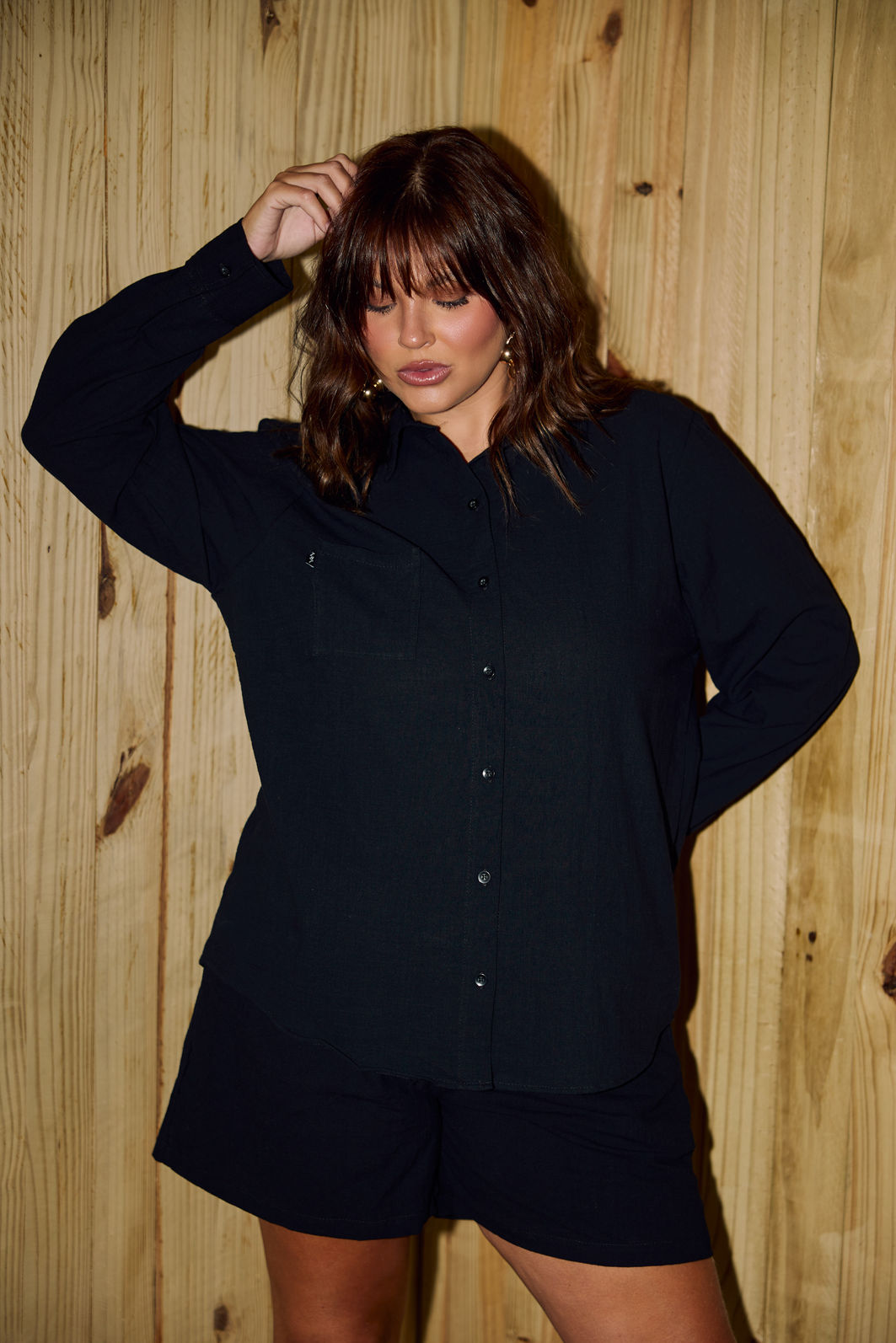A Camisa Alfaiataria Ellen Preta é a tradução do essencial sofisticado: uma peça leve, elegante e versátil que acompanha a mulher moderna em diferentes momentos do dia. Confeccionada em tecido 100% algodão com efeito visual de linho, apresenta textura sutil com ranhuras delicadas que enriquecem o visual e reforçam o toque natural da peça.