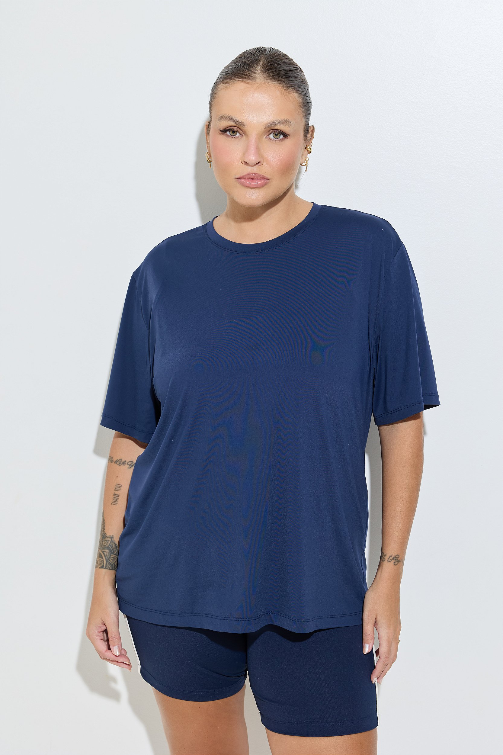 Confeccionada em poliamida com elastano, tem toque macio com sensação de algodão, mas com toda a tecnologia da fibra sintética. O tecido é leve, respirável e com visual opaco, deixando o look mais atual e alinhado.