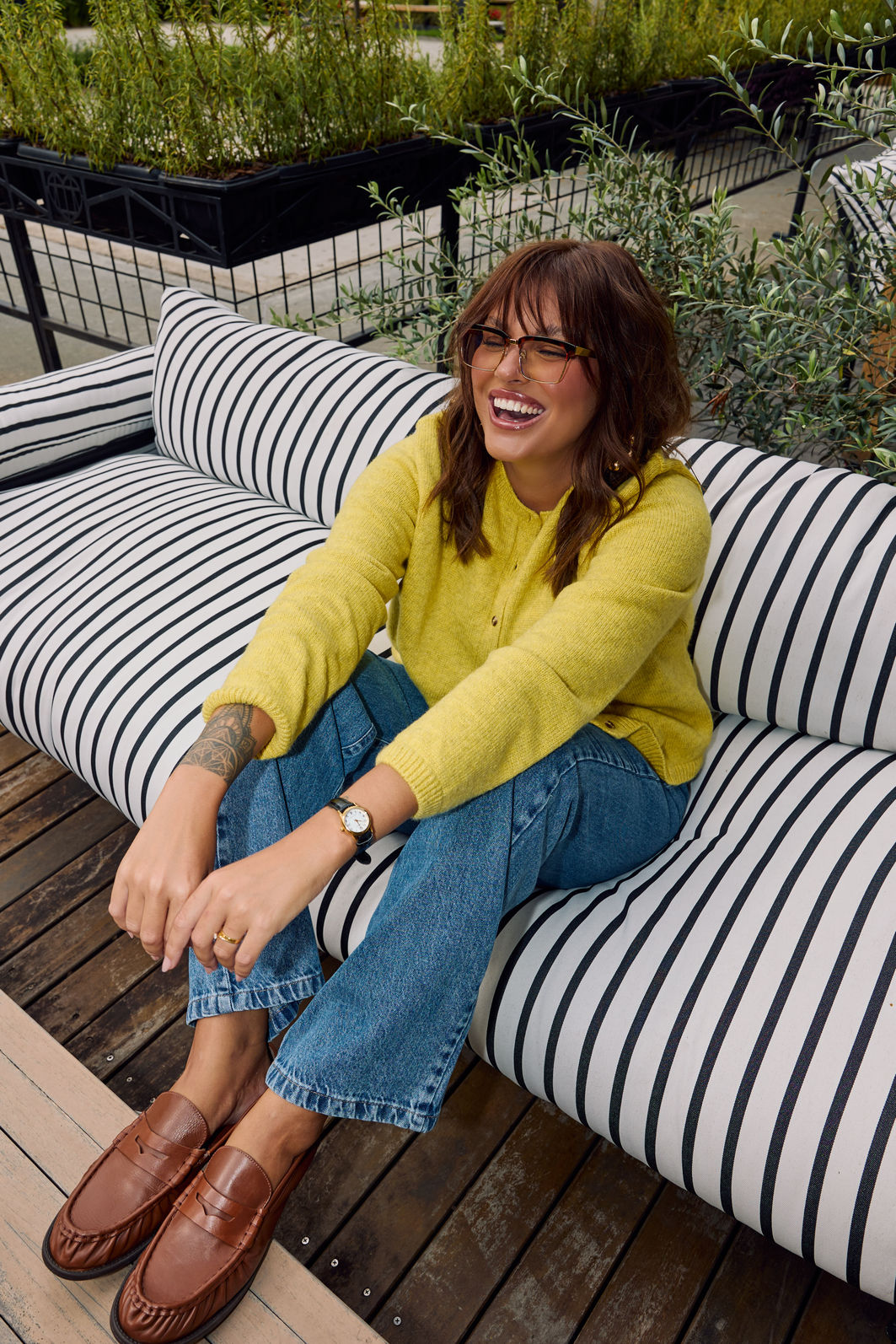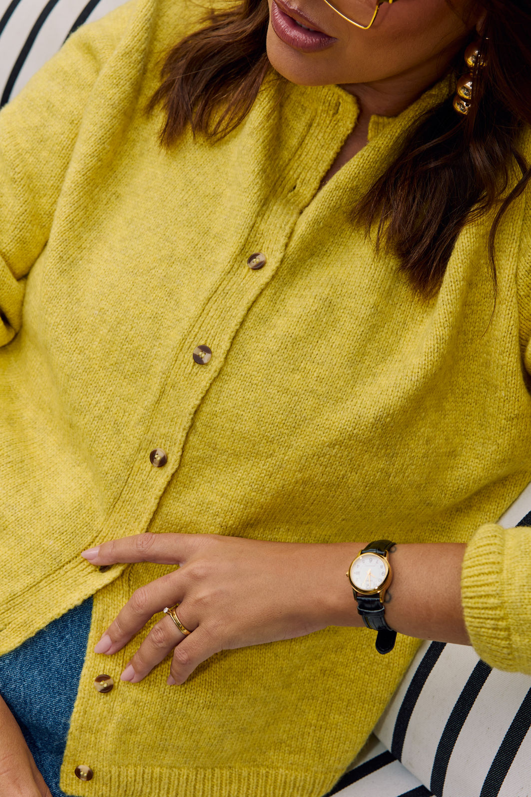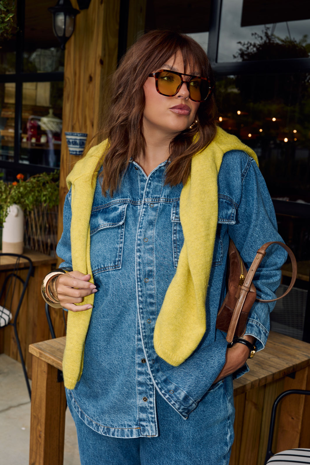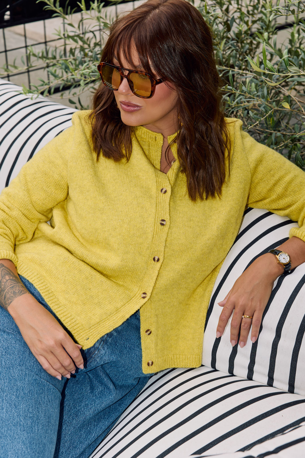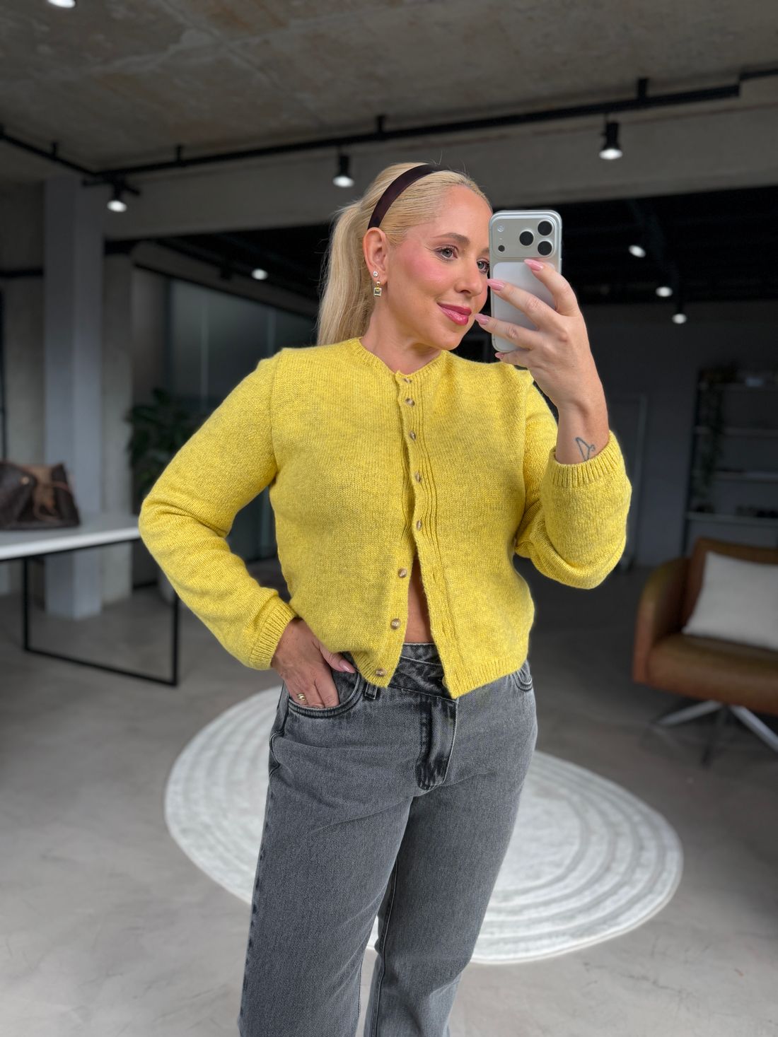 Use fechado como blusa, aberto como terceira peça ou sobrepondo camisas e t-shirts para composições modernas e cheias de personalidade. O tom amarelo mescla adiciona luminosidade ao look, trazendo um ponto de cor sofisticado que transita com facilidade entre produções neutras e mais fashion.