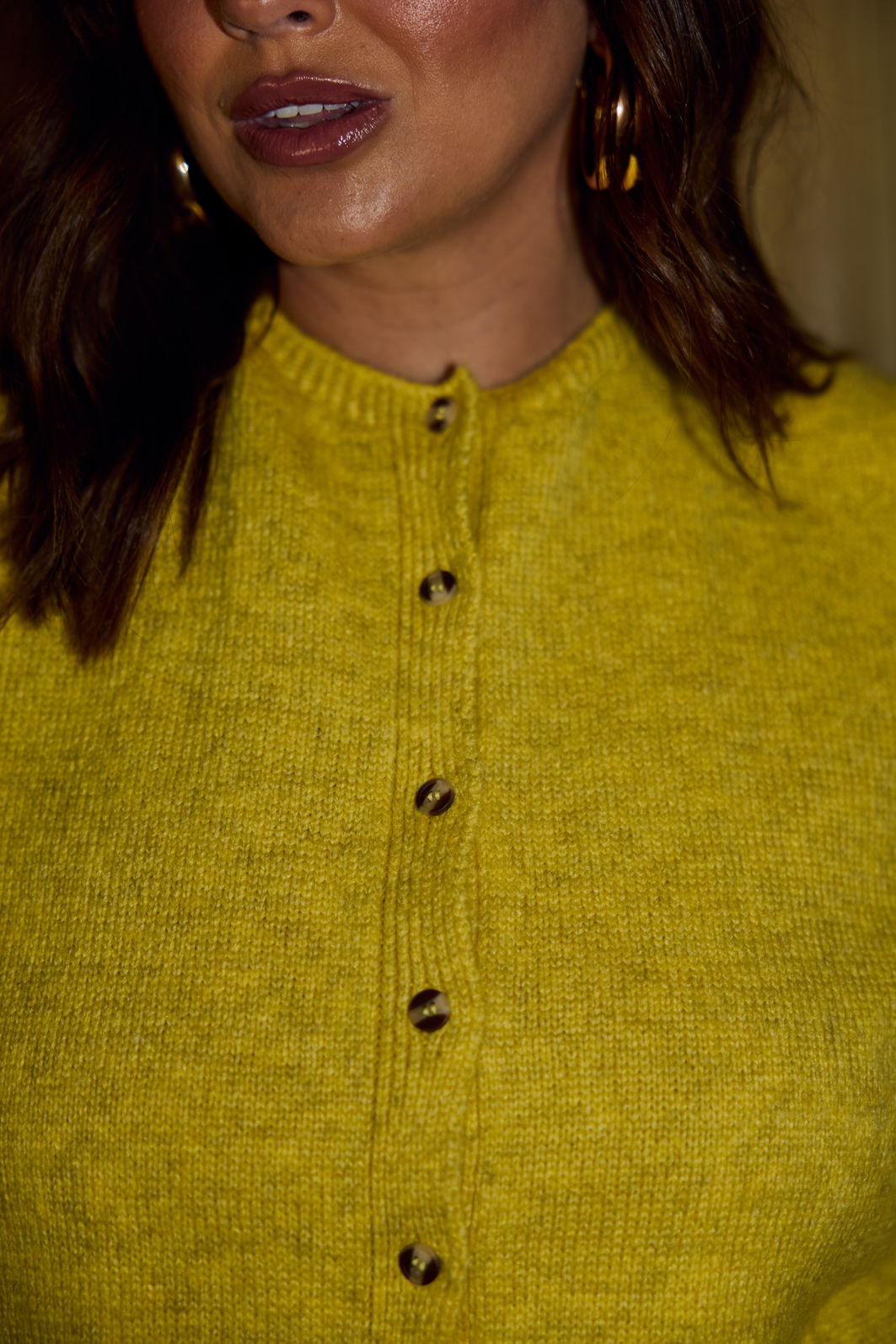 O Cardigan Tricot Siena em amarelo mescla é a peça perfeita para aquecer com leveza e sofisticação. Confeccionado em tricot extremamente macio e confortável, ele envolve o corpo de forma delicada, proporcionando sensação aconchegante sem adicionar volume excessivo ao visual.
