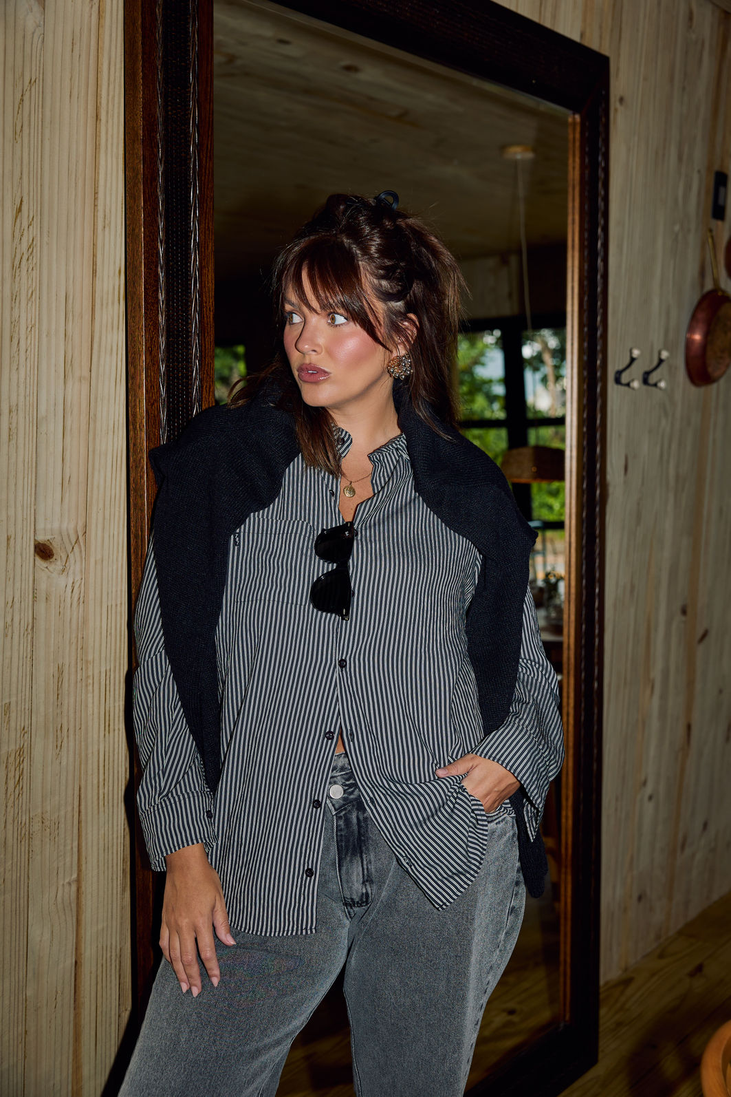 Seu caimento fluido garante conforto ao longo do dia, enquanto a textura quentinha traz aquela sensação acolhedora ideal para temperaturas mais amenas. Os botões frontais em tom neutro completam o design com discrição, reforçando a estética sofisticada e versátil da peça.