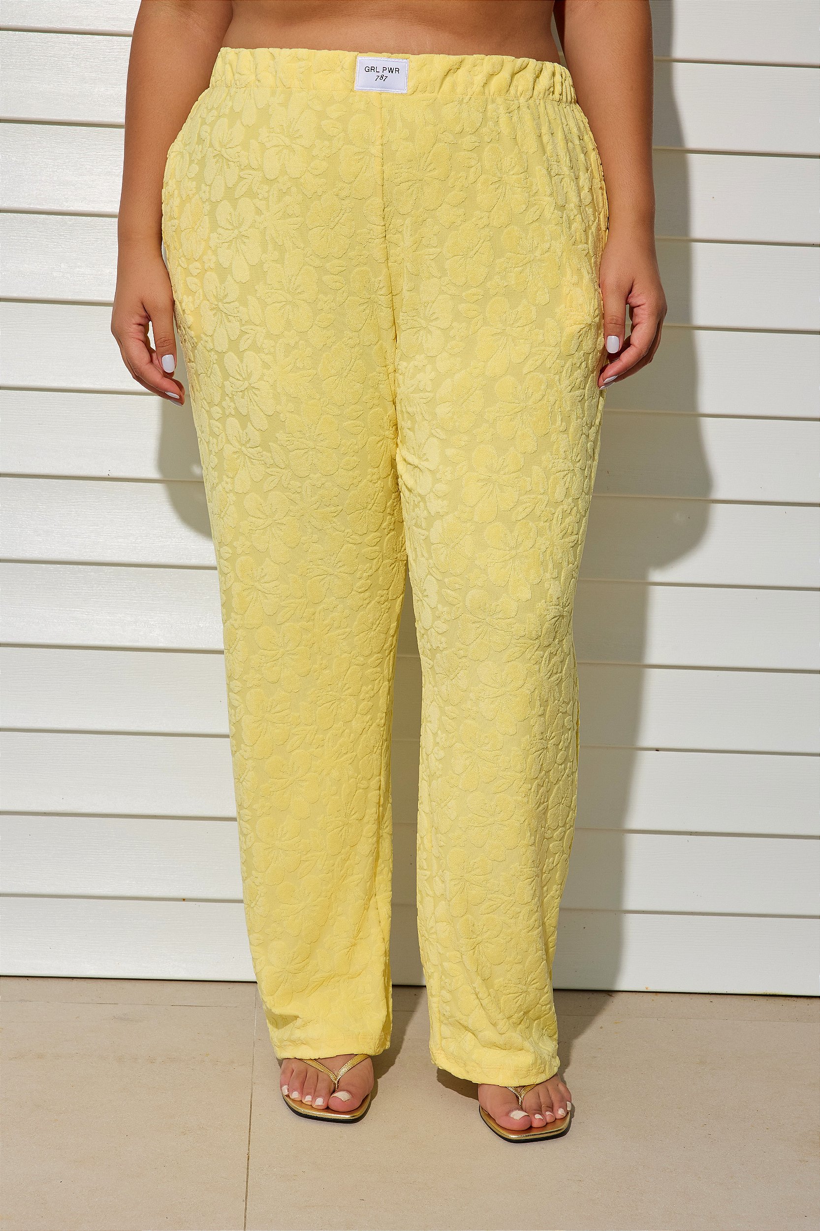 A Pantalona Atoalhada Amarela é a união perfeita entre conforto e estilo para o dia a dia. Confeccionada em tecido atoalhado com textura (97% poliéster e 3% elastano), oferece toque macio, leveza e um caimento soltinho que valoriza o movimento natural da peça. A tonalidade amarela vibrante traz luminosidade e modernidade ao visual, deixando o look mais marcante e atual.