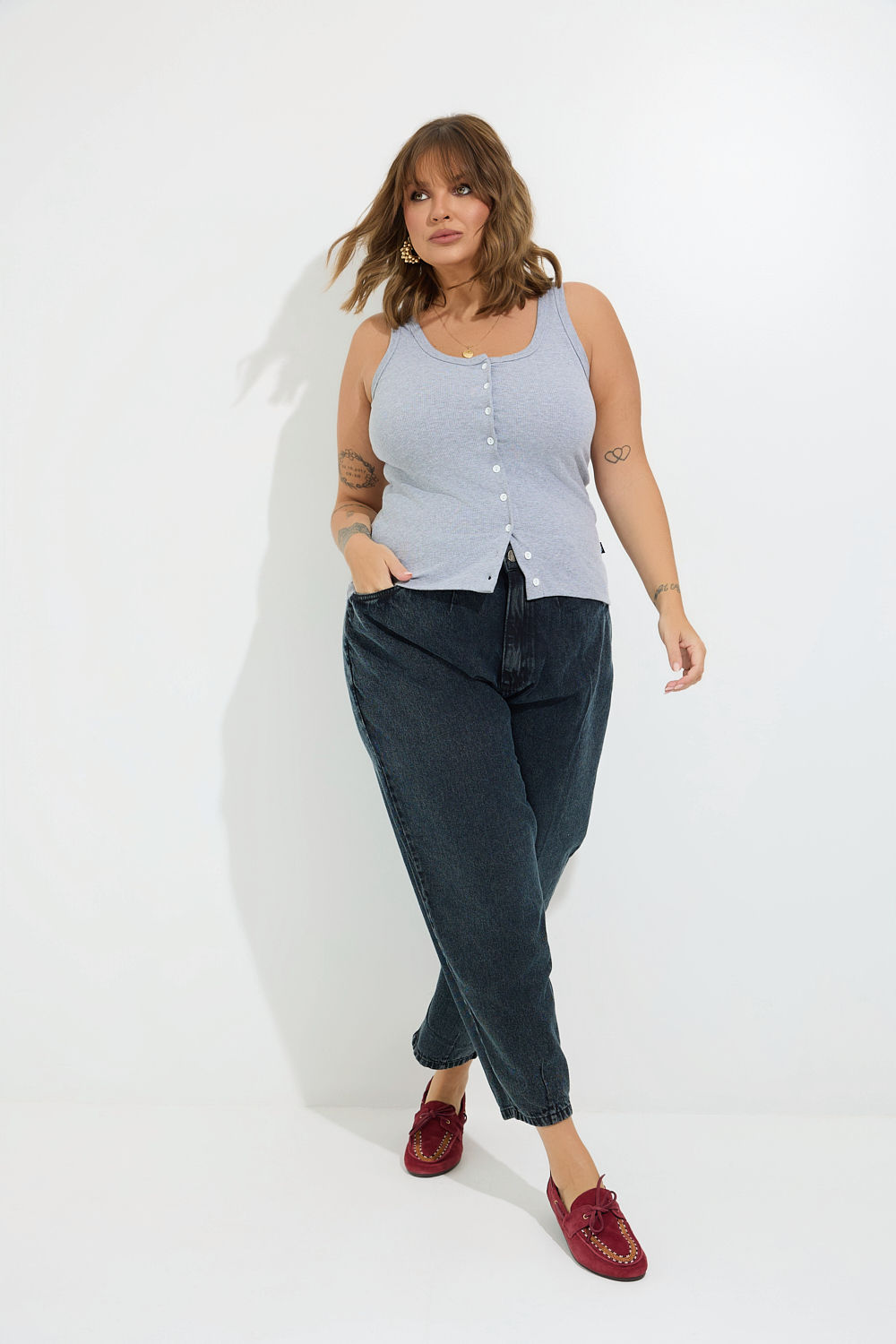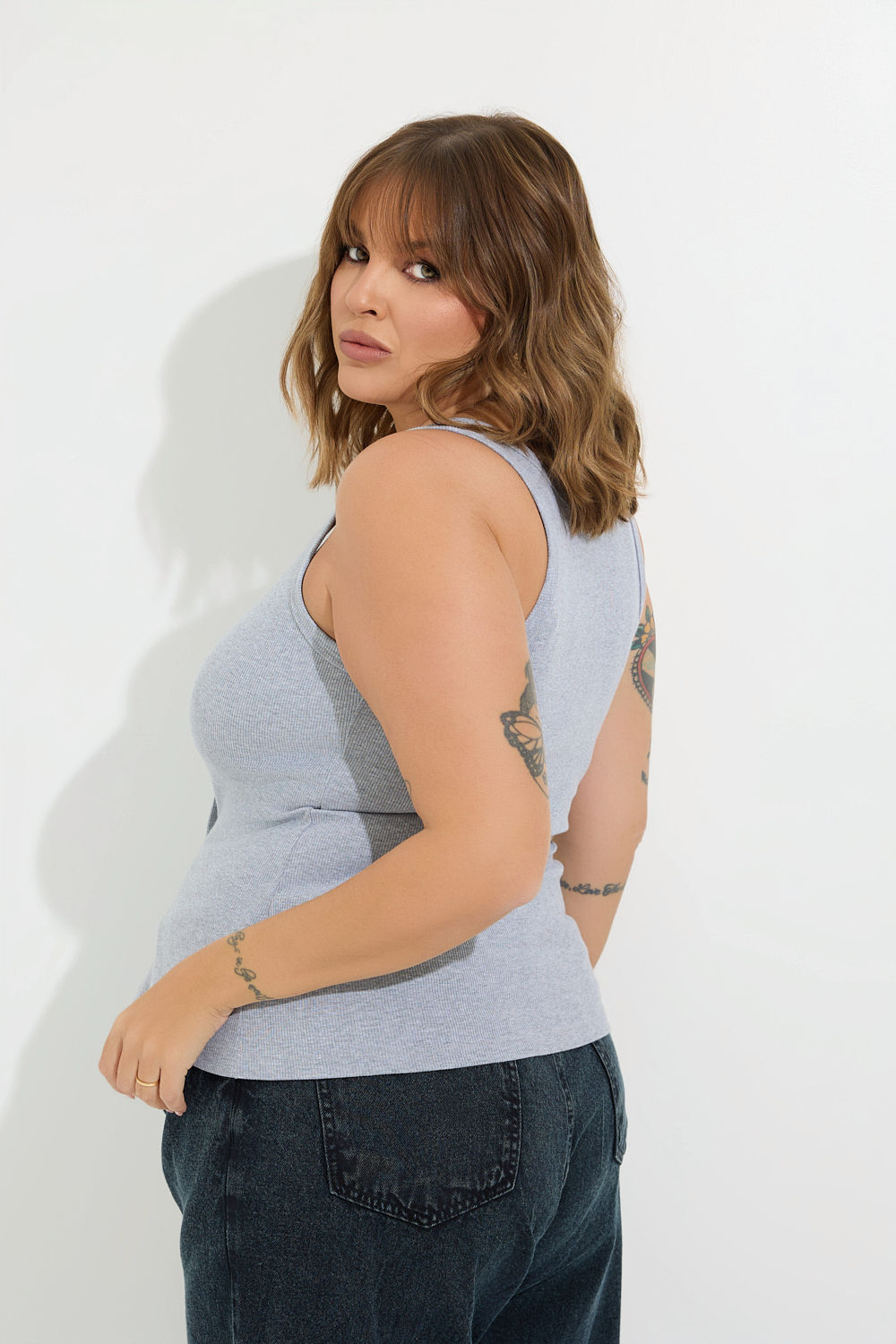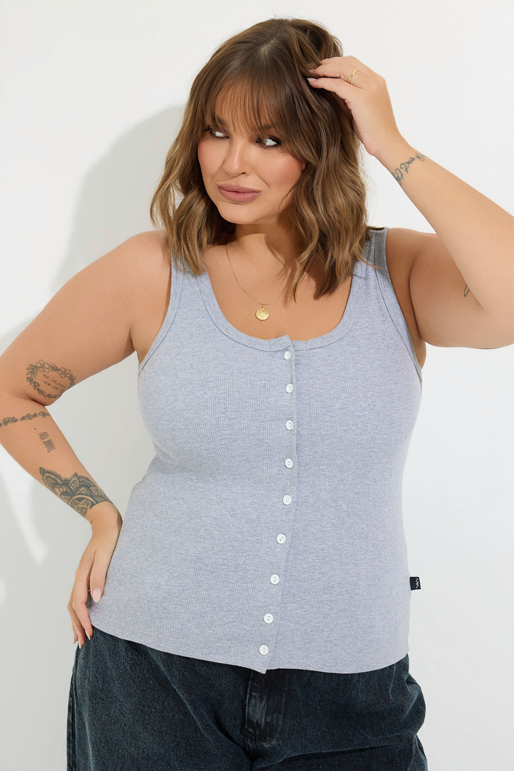 Confeccionada em malha canelada de alta qualidade, oferece conforto e caimento ajustado que valoriza a silhueta. As alças largas proporcionam praticidade no uso com sutiã, enquanto os botões funcionais na parte frontal adicionam um toque charmoso à peça.