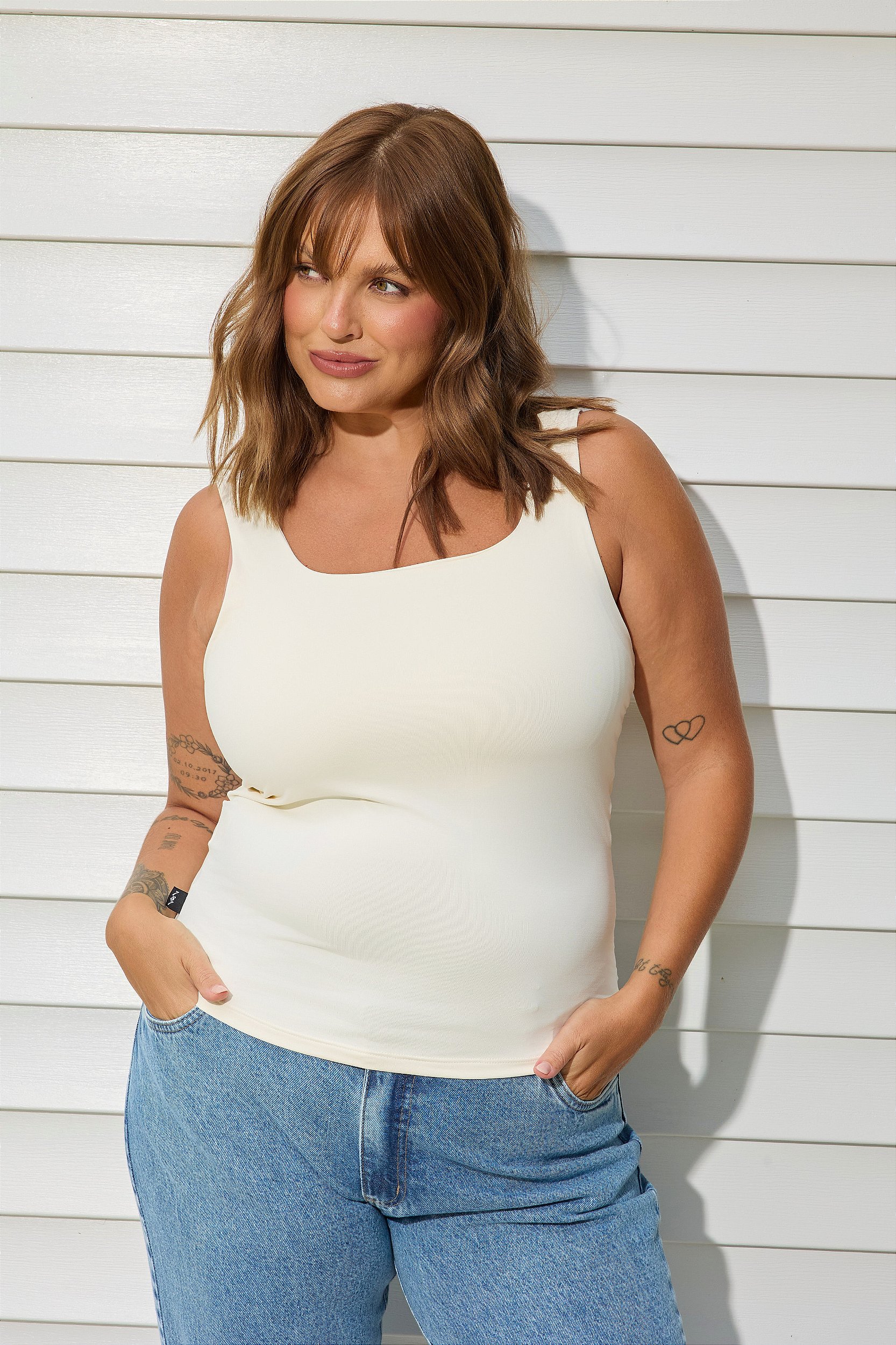 A parte superior dupla garante maior cobertura na região do busto, trazendo segurança mesmo em cores claras, enquanto as alças largas oferecem sustentação e praticidade sem abrir mão do estilo. Perfeita para compor desde looks casuais até produções mais elaboradas com acessórios, terceiras peças e modelagens marcantes.