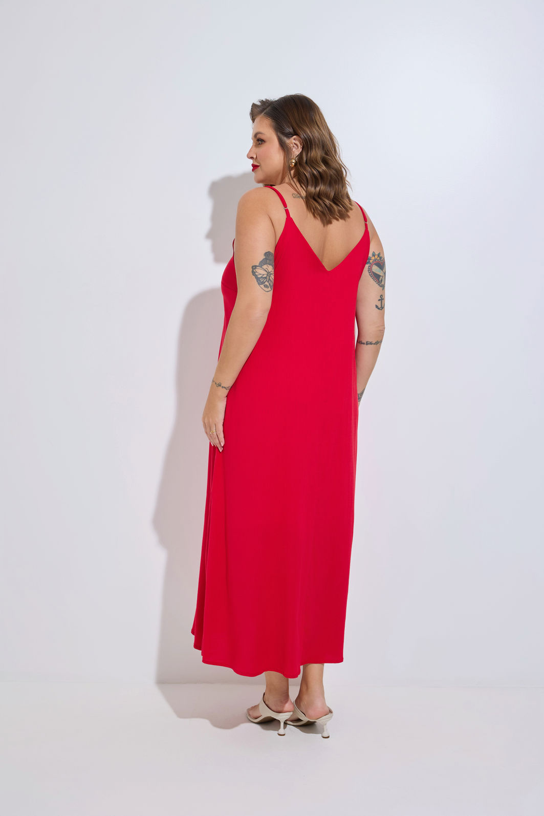 Com decote em V e alças finas ajustáveis, veste com delicadeza e se adapta perfeitamente ao corpo. O comprimento midi é moderno e democrático, permitindo diferentes combinações para usar tanto no dia quanto à noite.